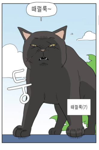 이는 큰 인기를 얻게되어 네이버 웹툰 '좀비딸'에서는 아얘 고양이 이름을 떼껄룩이라고 짓기도 했는데요, 이러한 이유 때문에 떼껄룩이라는 말이 웹툰 '좀비딸'에서 유래되었다고 생각하시는 분들도 꽤나 있는 편입니다.